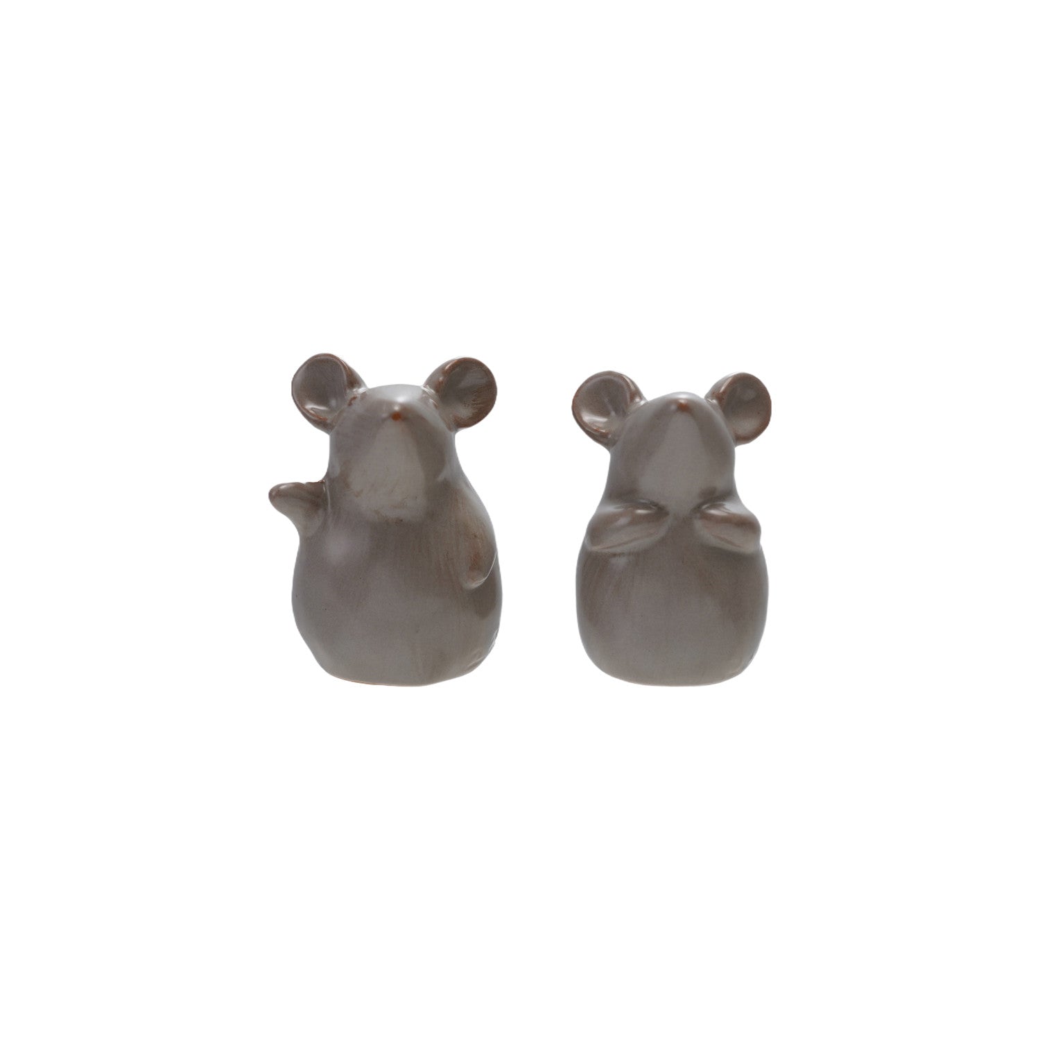 Charming stoneware mice crafted with a reactive glaze that creates unique patterns on each piece. Available in two distinct styles, with natural variations making every mouse one-of-a-kind. Perfect for adding whimsical character to kitchen shelves, countertops, or as an elegant accent in charcuterie board displays. A delightful blend of functional decor and a conversation starter for any home.