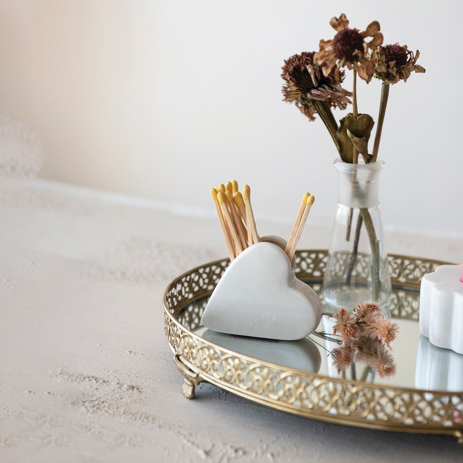 Bring warmth and charm to your home with this delightful stoneware match holder. Crafted in classic white, its heart shape adds a touch of elegance to any room—from the kitchen to the fireplace mantel. The built-in striker makes lighting candles and fires effortless. Perfect for storing matches while keeping them within easy reach, this functional piece doubles as a lovely decorative accent that celebrates life's cozy moments.