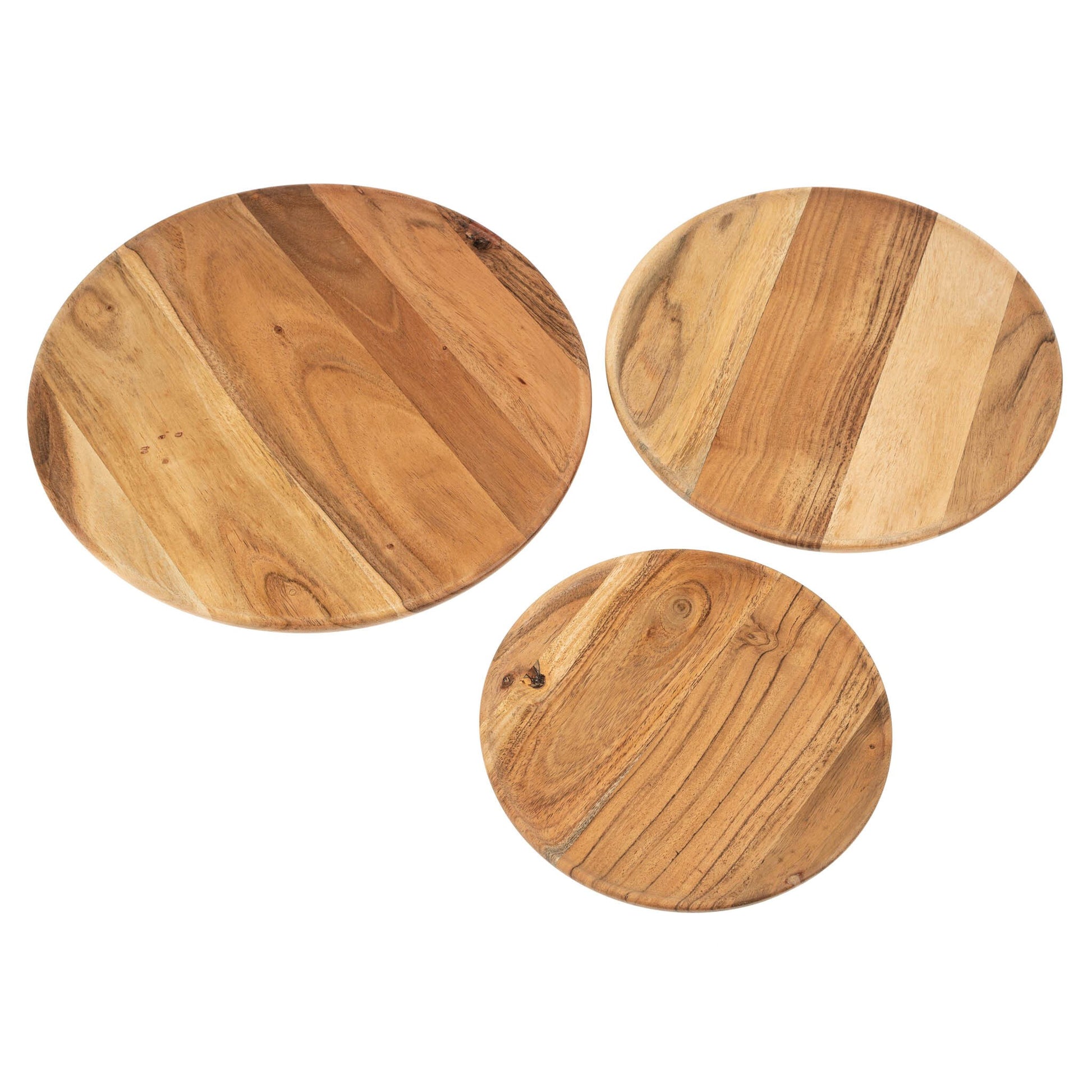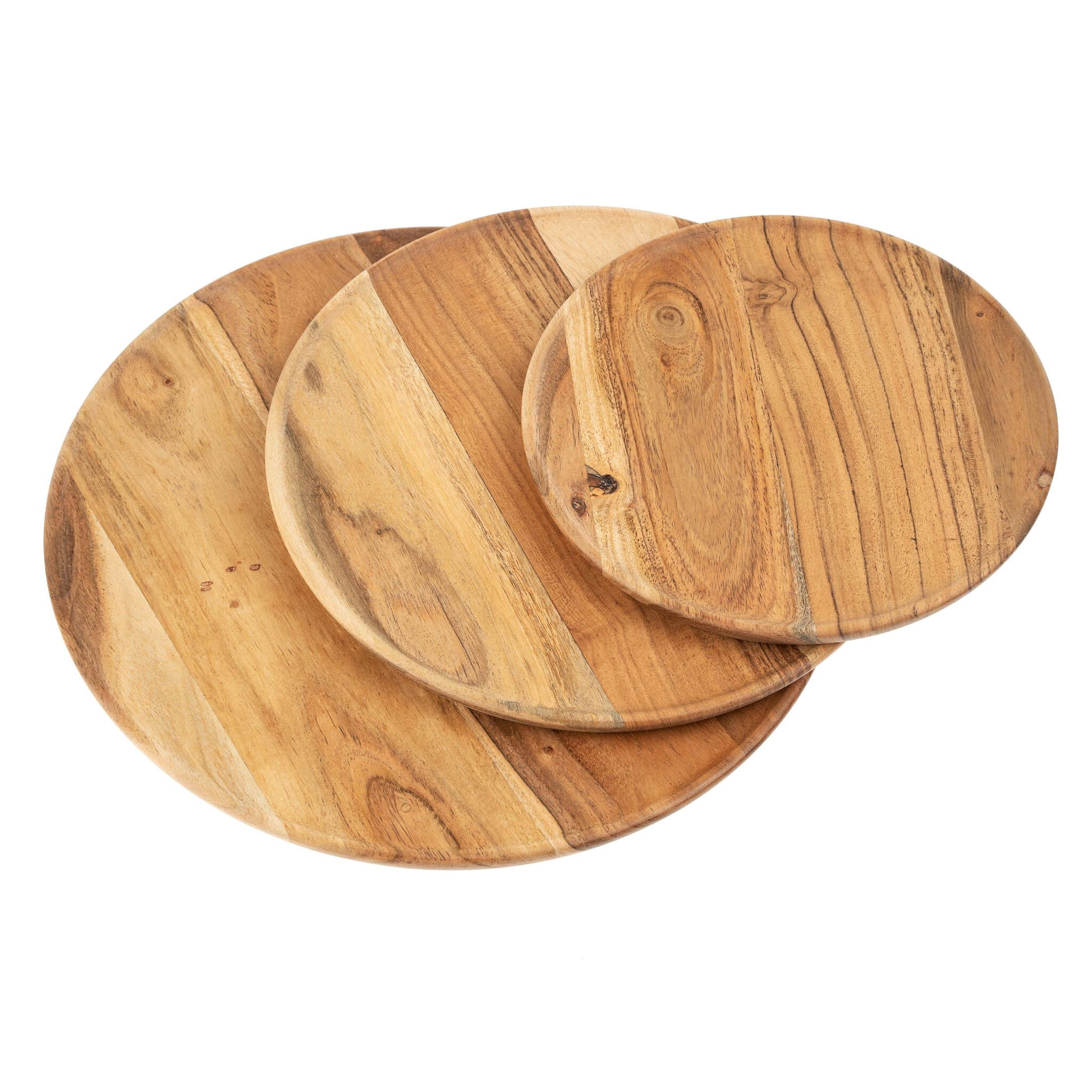 Each Acacia Wood Plate is hand-formed and finished using sustainable acacia wood. With its distinctive warm grain, we use it as an unexpected serving piece or charger plate to add an organic feel. It moonlights as a grounding decor piece, creating a spa-like feel in the bathroom, or as a base for layering in the living room.