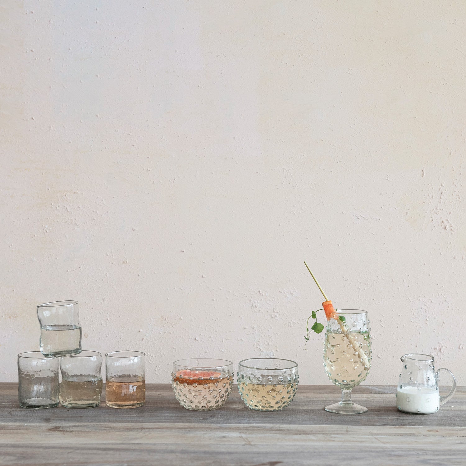 Elevate your home decor with this beautifully crafted hobnail glass bowl. Made with durable and easy-to-clean glass, it features a smooth and glossy surface that adds a touch of sparkle to any room. Use it to serve snacks, desserts, or as a decorative piece or candle holder.