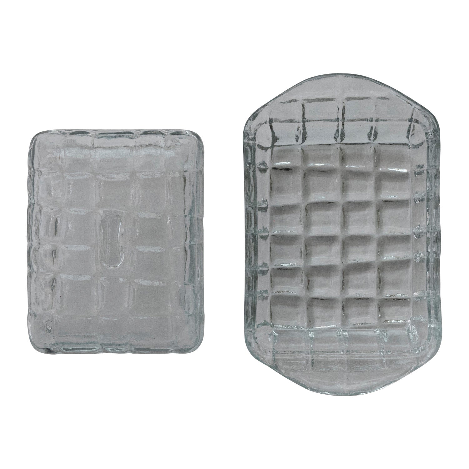 Elevate your table setting with this classic pressed glass butter dish, featuring an elegant grid pattern that catches the light beautifully. Measuring 6-3/4" long, 4" wide, and 3" high, it's the perfect size for everyday use or special occasions. The sturdy glass construction keeps butter fresh while adding a touch of vintage charm to your kitchen or dining room. A timeless piece that combines functionality with understated sophistication.