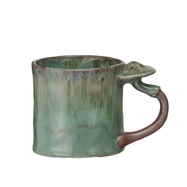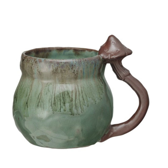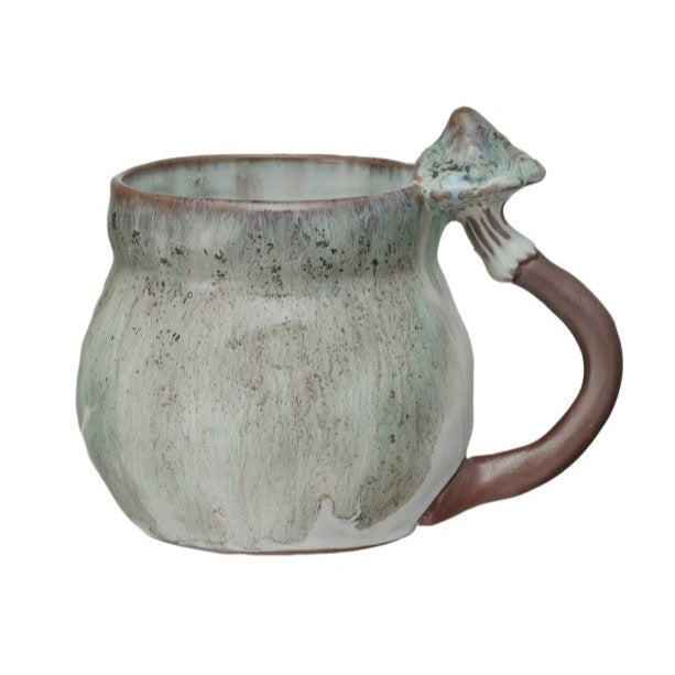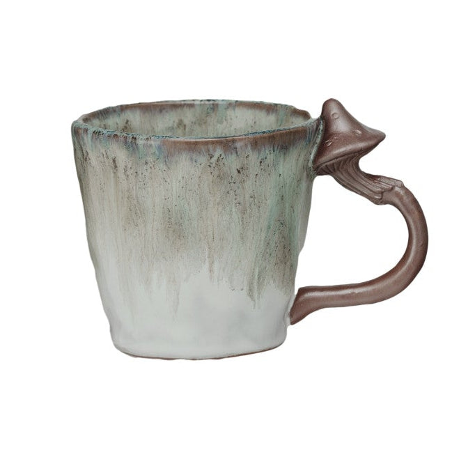 This stoneware mug features a whimsical mushroom handle and a unique glazed finish that adds a touch of personality to your morning coffee. Each mug is handcrafted, ensuring no two are exactly alike. Savour your drinks in style with this quirky and one-of-a-kind mug.